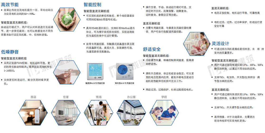 YBFC風(fēng)機(jī)盤(pán)管機(jī)組 YBFC系列風(fēng)機(jī)盤(pán)管,有吊頂暗裝、立式暗裝兩大系列,每種系列機(jī)型均有2排管、3排管可選,各10個(gè)型號(hào)。標(biāo)準(zhǔn)工況風(fēng)量范圍從180m3 /h到 2380m3/h(高速),供冷范圍量從1.78~12.94kW,供熱范圍從1.63~21.74kW。產(chǎn)品型號(hào)齊全,更好的滿足客戶的不同需求。該產(chǎn)品不僅設(shè)計(jì)嚴(yán)謹(jǐn),制造精心;款式新穎,結(jié)構(gòu)先進(jìn);性能高效,噪省低,耗電少,安全可靠,而且維修安裝方便。 高能效 機(jī)組換熱器采用優(yōu)質(zhì)銅管,配以高效波紋雙曲開(kāi)窗親水鋁翅片,運(yùn)用先進(jìn)的機(jī)械無(wú)伸縮漲管工藝,換熱效率高。配以大風(fēng)量低噪聲風(fēng)機(jī)強(qiáng)化傳熱,使機(jī)組發(fā)揮最大的傳熱效能。 低噪聲 機(jī)組均經(jīng)過(guò)匹配優(yōu)化,風(fēng)機(jī)經(jīng)過(guò)逐一校驗(yàn),確保機(jī)組寧?kù)o高效地工作。 無(wú)凝露 機(jī)組凝結(jié)水盤(pán)為整體沖壓一次成型,無(wú)焊縫、焊點(diǎn);難燃型保溫材料整體粘貼于水盤(pán),杜絕滴漏水和凝露的現(xiàn)象。 安裝簡(jiǎn)單 立式暗裝風(fēng)機(jī)盤(pán)管機(jī)組可靠墻安裝在窗臺(tái)下,客戶可根據(jù)自己的喜好來(lái)裝修房間,既舒適又美觀。 維護(hù)方便 電機(jī)采用進(jìn)口高精度優(yōu)質(zhì)滾珠軸承,無(wú)須加油,自行潤(rùn)滑,噪聲低,壽命長(zhǎng)。電機(jī)中心軸均經(jīng)調(diào)質(zhì)和表面防腐蝕處理,經(jīng)久耐用。 靈活應(yīng)用 提供多種選項(xiàng),滿足客戶的不同需求。 品質(zhì)保證 YBFC系列風(fēng)機(jī)盤(pán)管通過(guò)美國(guó)空調(diào)制冷協(xié)會(huì)AHRI認(rèn)證。 |