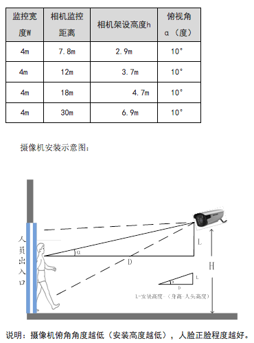 攝像機安裝要求及鏡頭值關(guān)系如下: