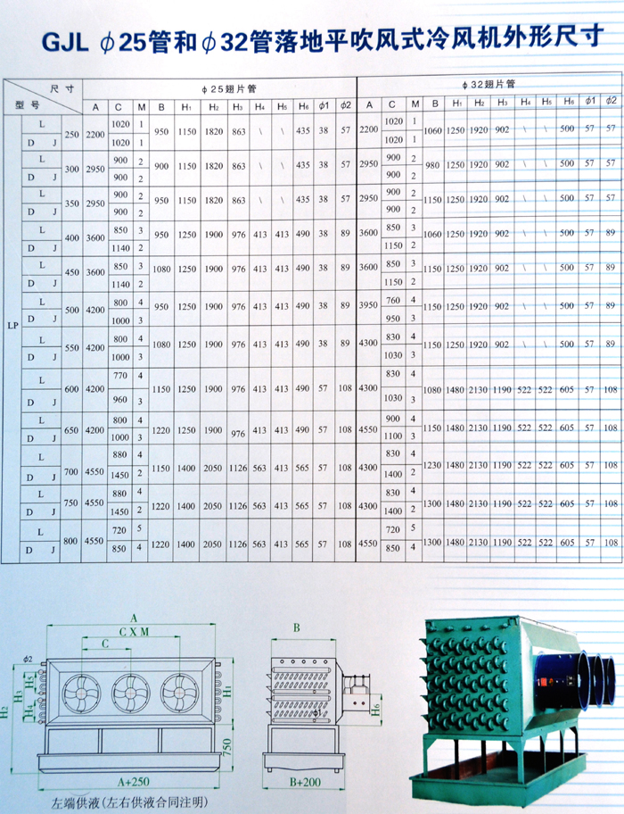 高效冷風機換熱管有優(yōu)質(zhì)無縫鋼管、優(yōu)質(zhì)不銹鋼無縫鋼管、優(yōu)質(zhì)無縫鋁管、銅管;翅片材質(zhì)有鋼片、鋁片、不銹鋼片;翅片管組型式有鋼管鋼片、鋼管鋁片、鋁管鋁片、不銹鋼管鋁片、不銹鋼管不銹鋼片、銅管鋁片。