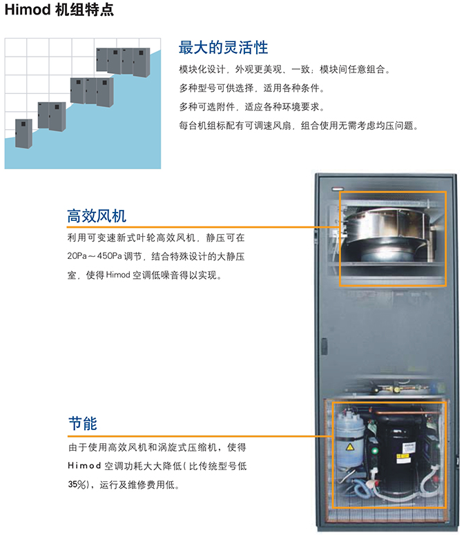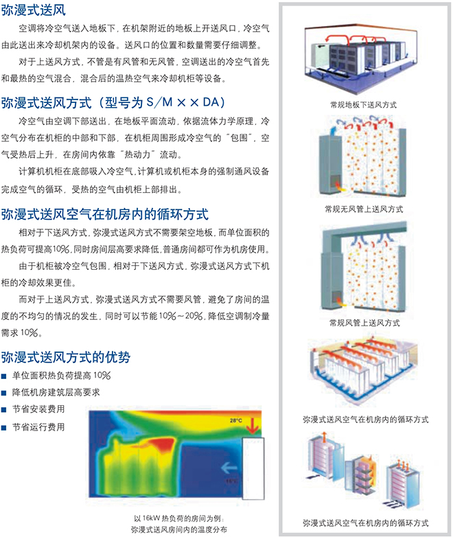 同時(shí)采用彌漫式送風(fēng)方式,獲得最優(yōu)性能的同時(shí),節(jié)省用戶投資,最大限度降低機(jī)房層高要求插入式風(fēng)機(jī)、大面積蒸發(fā)器、渦旋式壓縮機(jī)、優(yōu)化的制冷系統(tǒng)使節(jié)能性能顯著提高